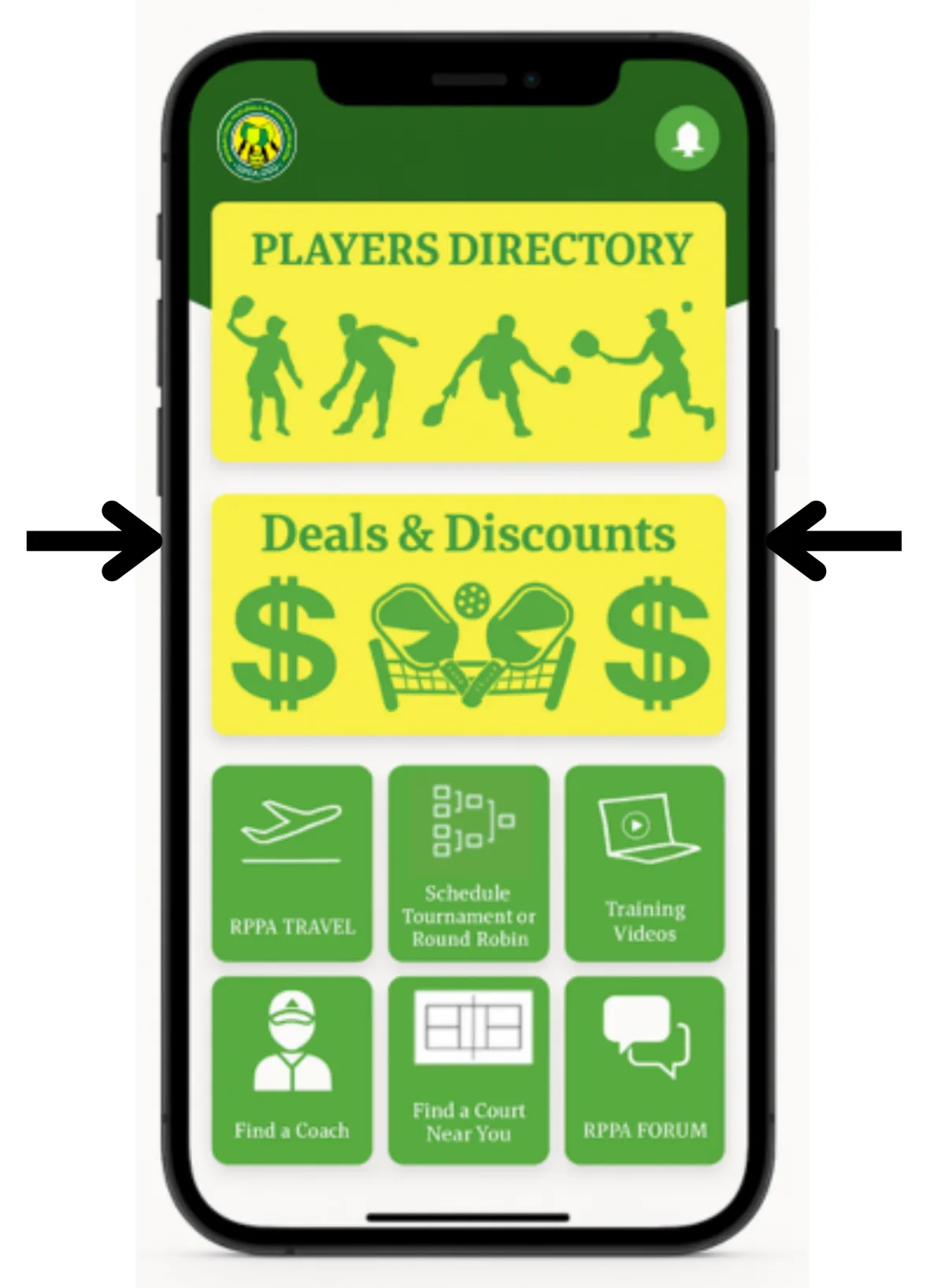 DEALS & DISCOUNTS appears on the HOME page of the RPPA APP ensuring that new deals by verified vendors are showcased prominently every single time players open the APP